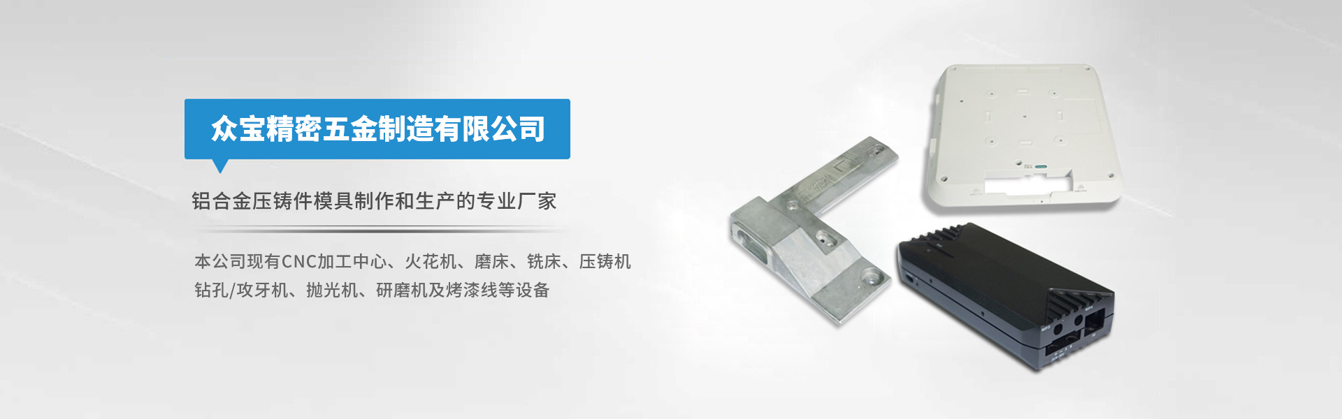 東莞市東城眾寶精密五金制造有限公司 鋁合金壓鑄件模具制作和生產的專業廠家 實現從圖紙-模具-壓鑄-機加-清理-拋光研磨以及表面噴油處理一站式的優質服務